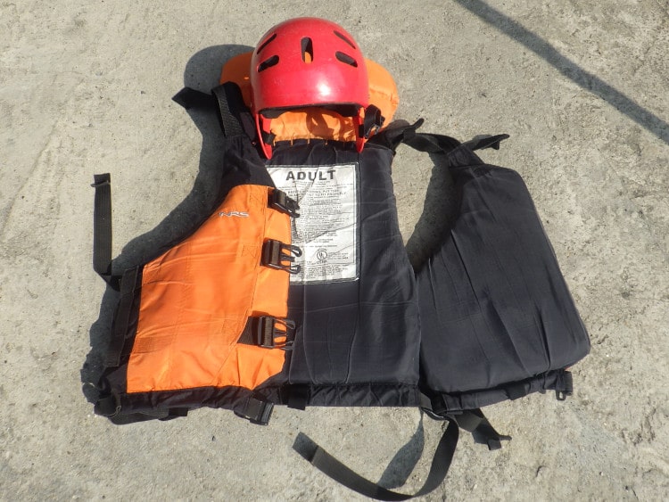 川のグレードに合わせた浮力のあるライフジャケット。 川に落ちた場合、カヤックなどとは違い、つかまる浮力がパドル程度しかないため、ラフティング用のライフジャケットは大きい浮力が必要です。