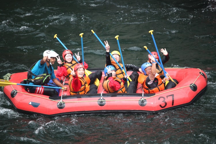また、ラフティングはチームの力が大事なため、ボートの上のクルーの皆がタイミングを合わせて漕ぐことも大事となります。