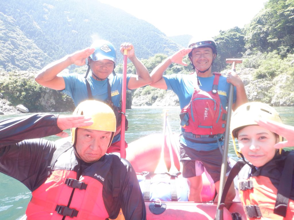 我らがキャプテンも帰還したということで、記念のキャプテンポーズから8月のラフティングスタートです!!