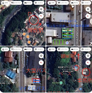 去年事務所横に大型バス1台駐車した実績あり。前提として、弊社駐車場の下段は出入り口が急な坂のためバスは駐車しない方がいい。